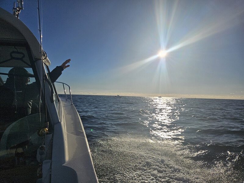 沖へ出るとタコ釣りの遊漁船が船団のように群がっています。