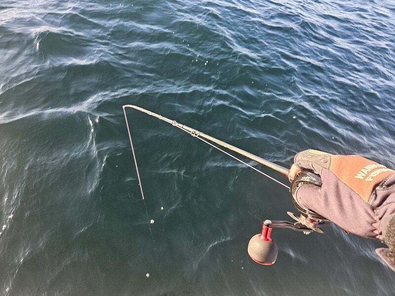 水深は30~40m。潮が速いのでオモリは80号をセットします。