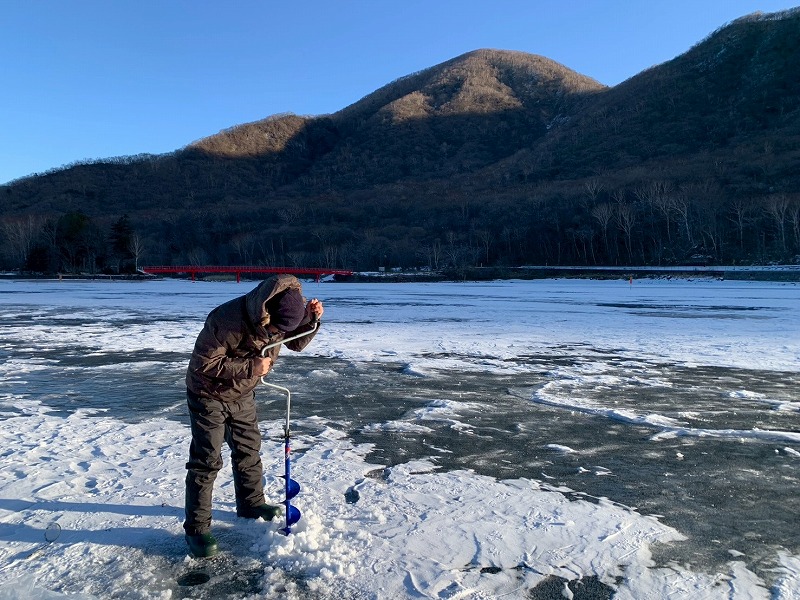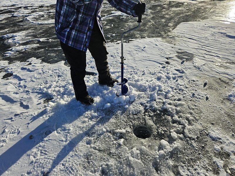 氷上ワカサギ釣りは仕掛けを垂らす穴を自分で開けなければいけません。