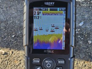 ワカサギは底付近にいることが多いらしいので底付近を集中的に狙います。