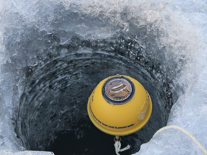 そしてやっと開けた穴に魚探を入れてみましたが全くの無反応です。