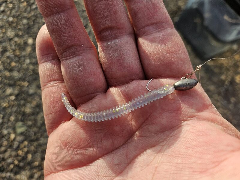 イージーシェイカー2.5インチでは大き過ぎるのでは?と小さいワームへ変えるとアタリすら無くなります。