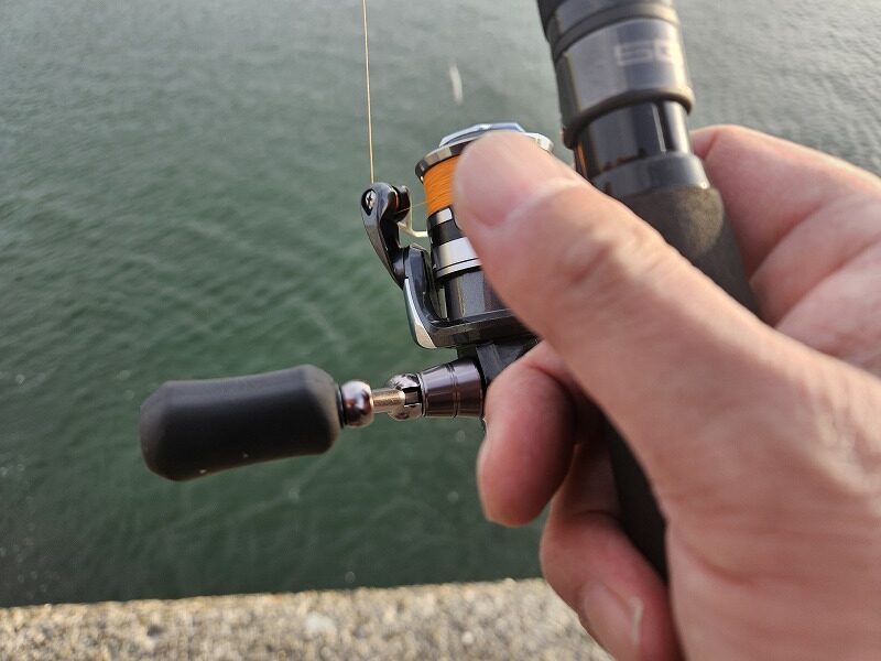 しかし足場が高く、風が強いのでラインが煽られルアーがなかなか沈みません。