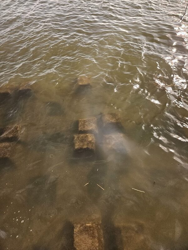 裸眼でもうっすらと見えますが、足元にはテトラが沈んでいるようです。