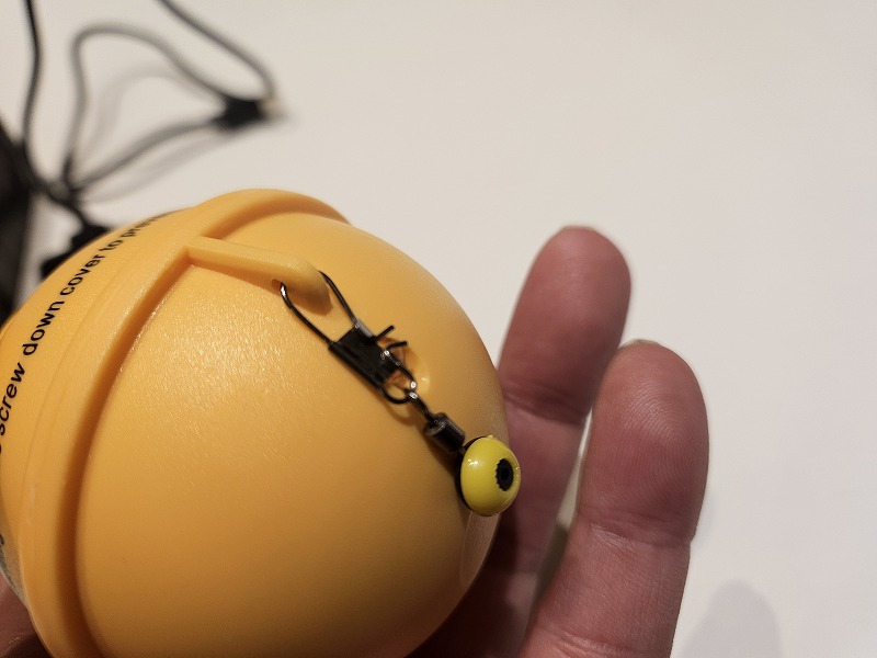 無線センサの側面に付属のサルカンが接続出来る穴があいています。