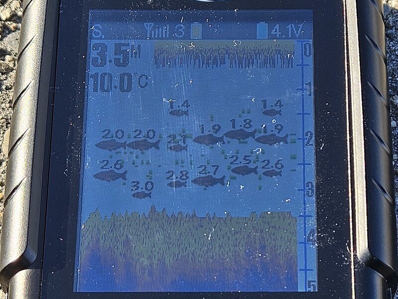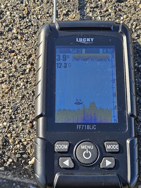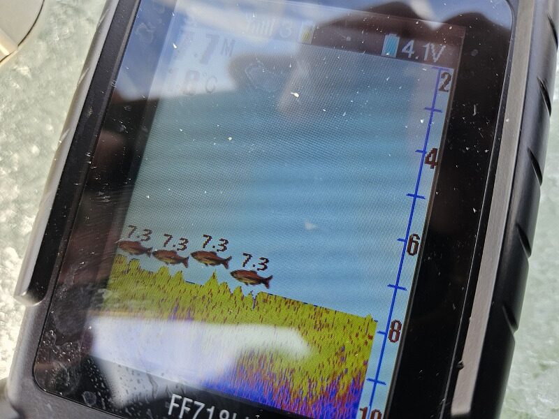 数字は魚がいる水深を表しています。(上記写真では水深3.5mに魚がいる)