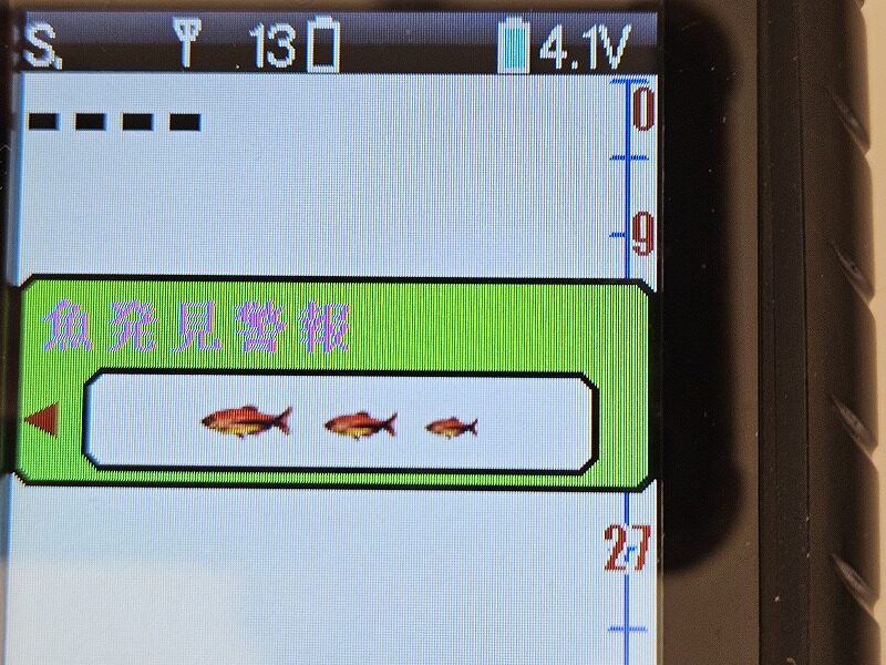 この魚探は具体的な魚のサイズを表示することは出来ず、大中小の3段階で表示される仕様です。