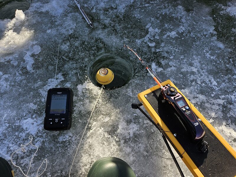 また逆にワカサギが釣れたタイミングで魚探に反応はありませんでした。