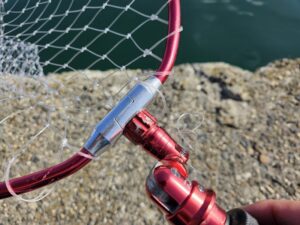 ランディングネットにタモジョイントを取り付けて、背中に背負って使っていますが、ネットをセットしていたら・・・